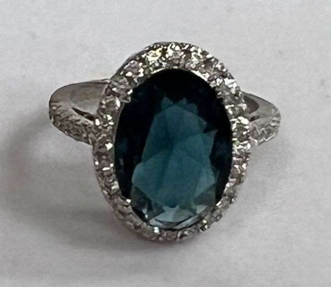 LOT 581 - Sterling Silver Blue Topaz Ring