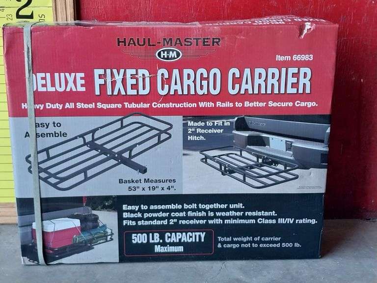 Haul Master Deluxe Fixed Cargo Carrier, Fits 2" receiver hitch, 500lb capacity, 53"x19"x4" Basket, New In Box