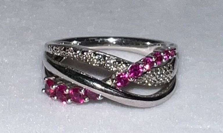 LOT 448 - Sterling Silver Pink Sapphire Ring