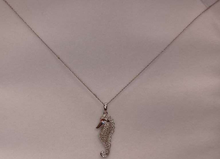 LOT 454 - Sterling Silver Diamond Seahorse Necklace, 18in Chain
