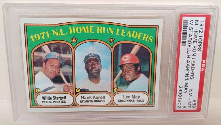 LOT 449 - 1972 Topps, NL Home Run Leaders, W. Stargell/H. Aaron/L. May #89, PSA NM-MT 8