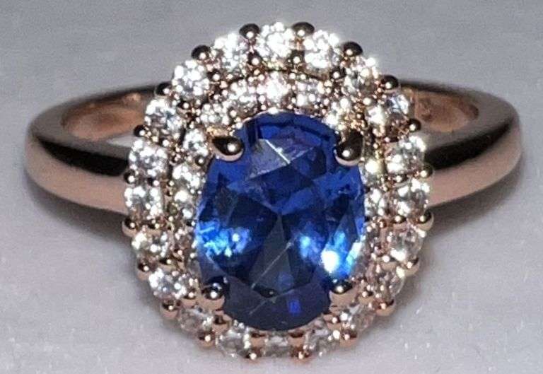 LOT 494 - Sterling Silver Oval Cut Sapphire Evening Ring
